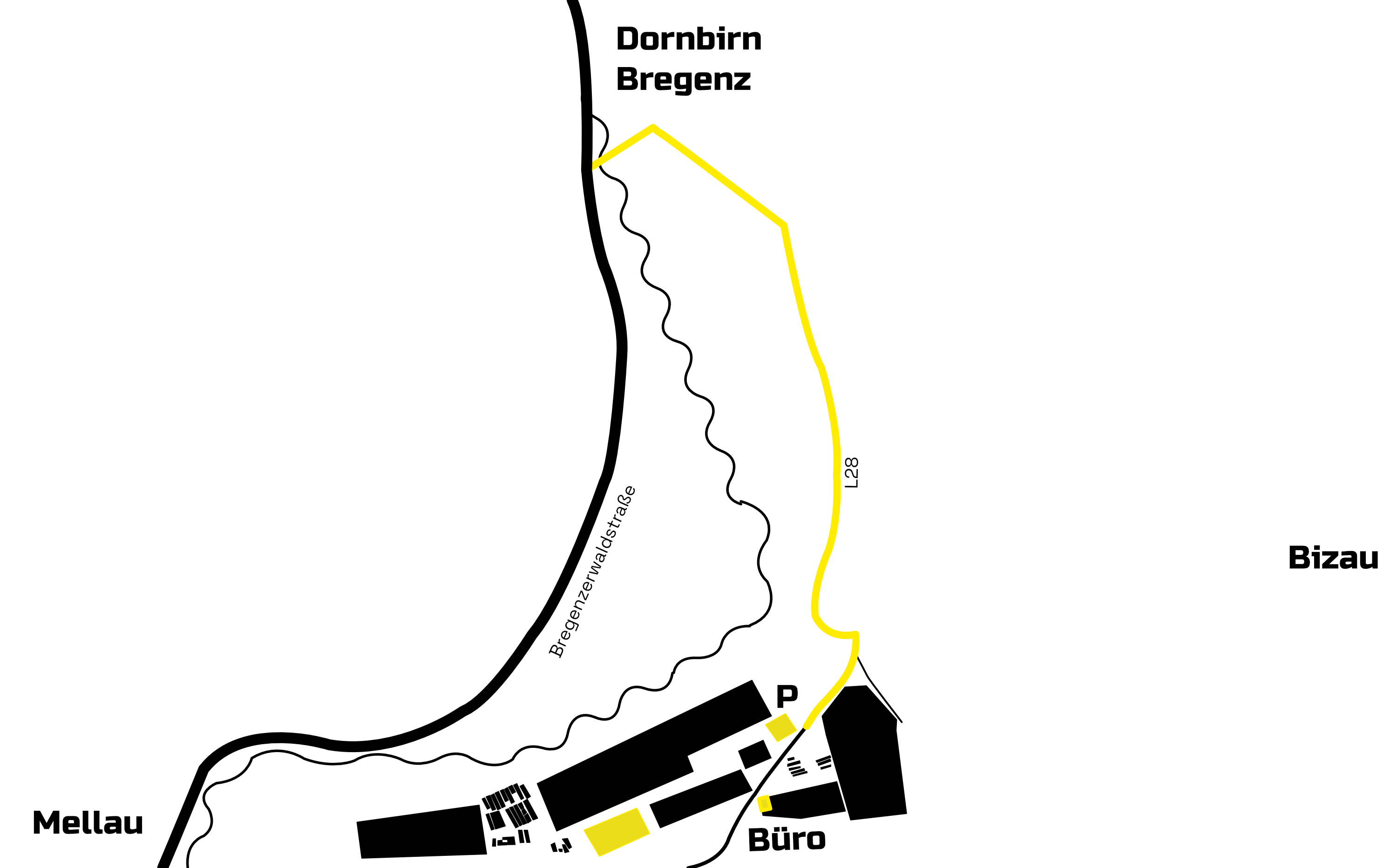 Von Dornbirn oder Bregenz führt die Route über die Bregenzerwaldstraße bis nach Reuthe. In Reuthe stark links auf den Pelzrain abbiegen und nach der Brücke gleich wieder rechts auf die L28 fahren. Der Straße folgen und anschließend rechts in die Vorderreuthe einbiegen.